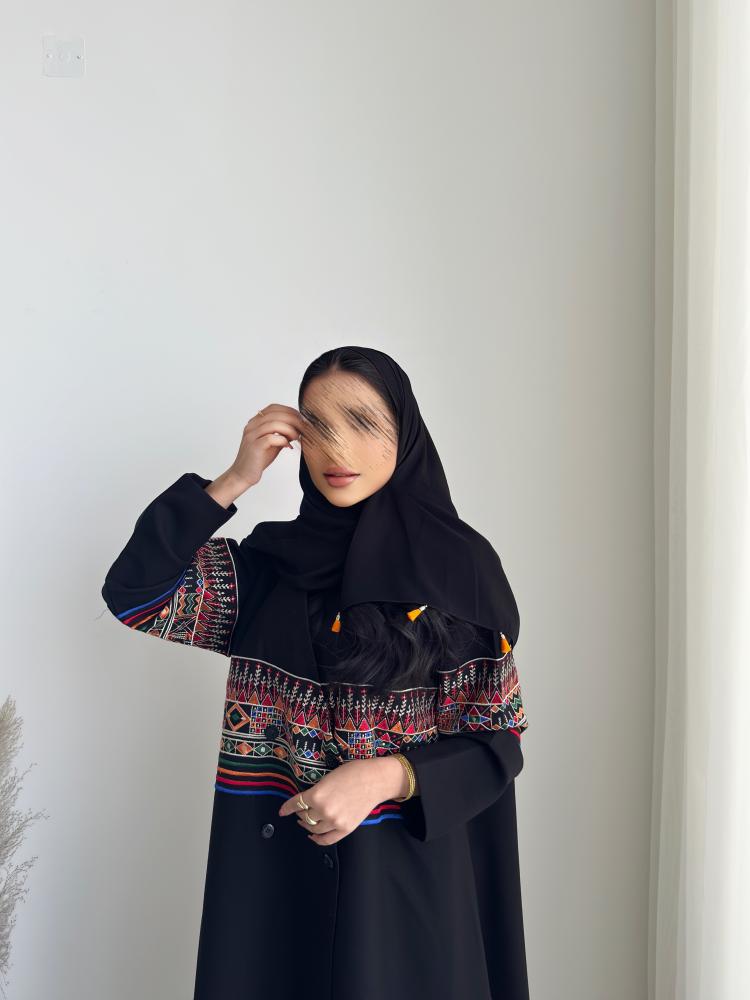 - الطرحة المرفقة مع العباية تضيف لمسة من الجمال وتكمل الإطلالة بأناقة.